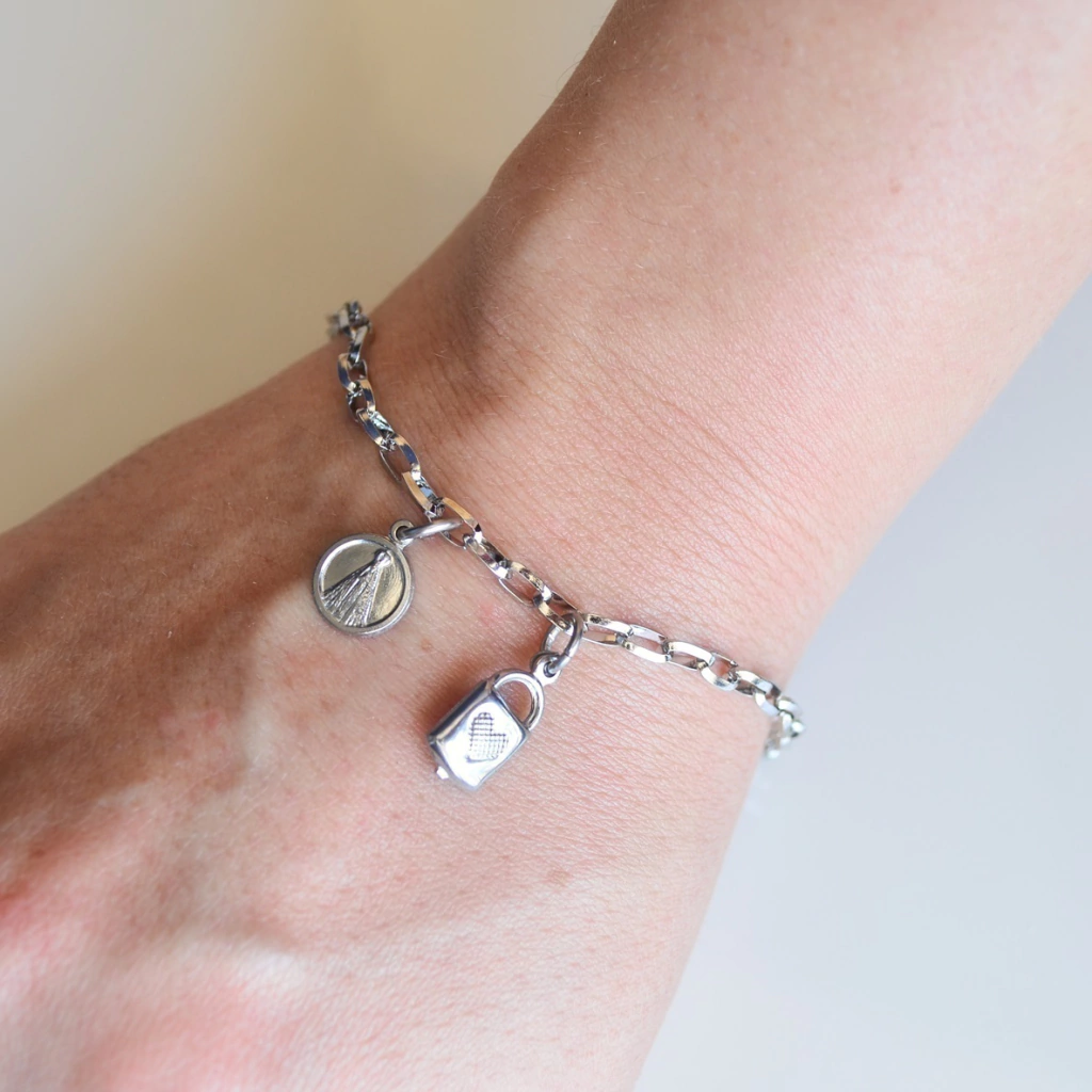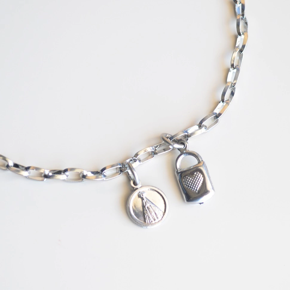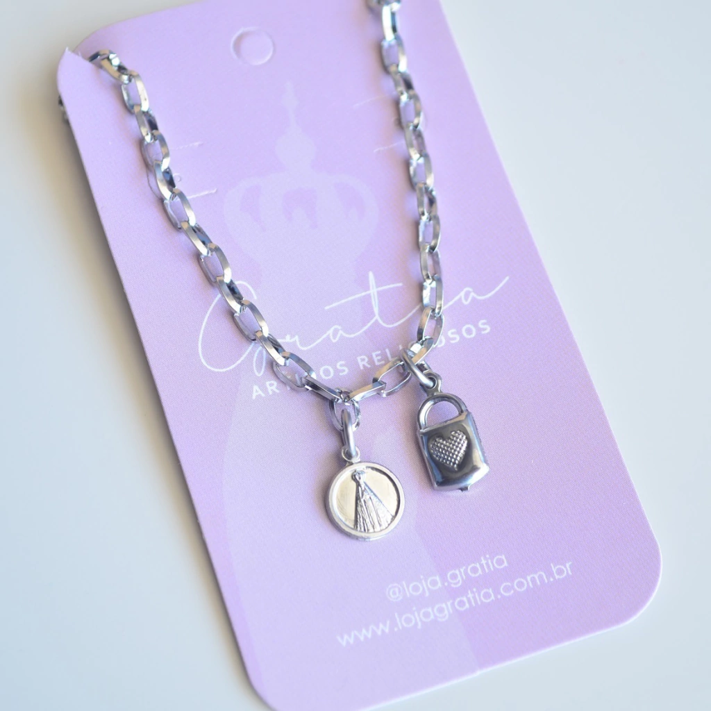 A pulseira de aço inox com pingente de Nossa Senhora Aparecida é uma peça única para quem deseja expressar sua devoção e fé na Virgem Maria. Feitos inteiramente em aço inoxidável, a pulseira e os pingentes são resistentes à oxidação e duráveis, o que torna essa cadeia perfeita para uso diário e resistente ao desgaste. O pingente com a imagem de Nossa Senhora Aparecida é delicado e traz consigo a fé e devoção à Padroeira do Brasil.