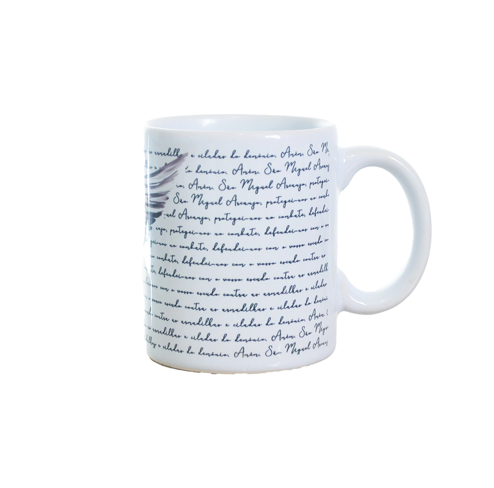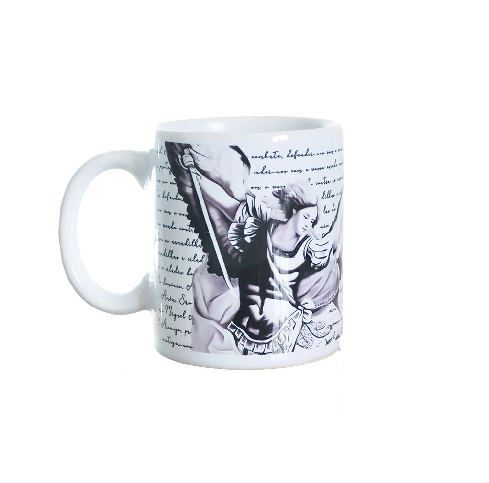 A caneca de São Miguel Arcanjo é confeccionada com cerâmica na cor branca e possui a imagem de São Miguel gravada na caneca. Atrás da imagem, possui gravada a oração a oração de São Miguel. É uma ótima forma de reforçar sua devoção por São Miguel ou de presentear uma pessoa querida.