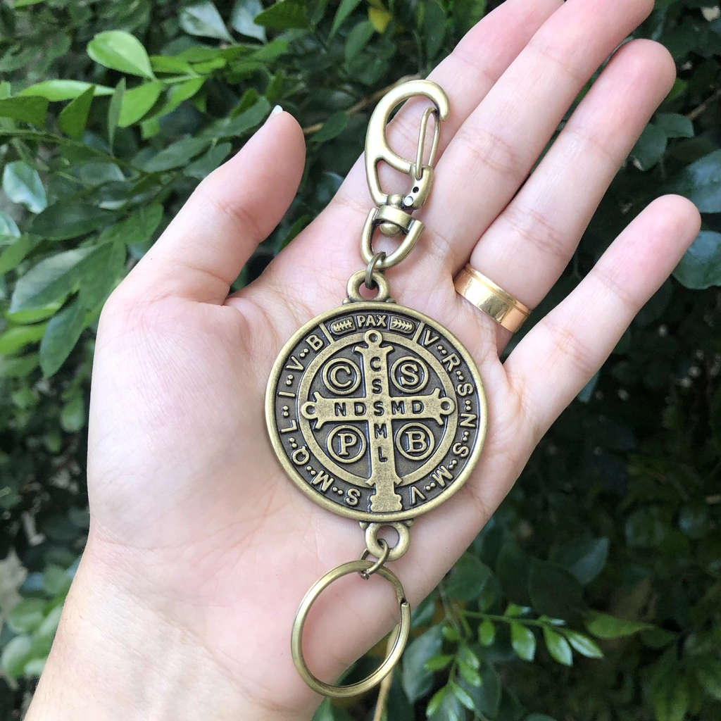 Chaveiro Medalha São Bento Ouro Velho Extragrande