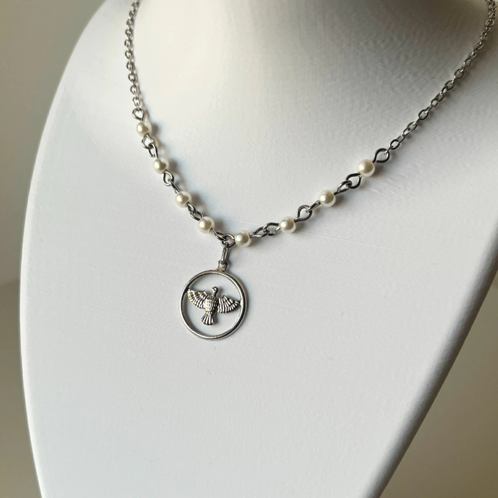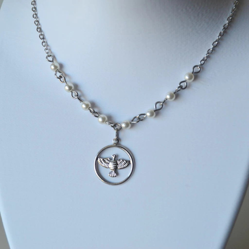 Uma joia delicada e cheia de significado espiritual. Essa choker combina a força e durabilidade do aço inox com a suavidade das pérolas, trazendo como destaque o pingente do Espírito Santo — símbolo da paz, proteção e presença divina.