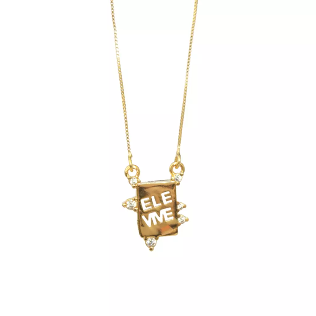 O Colar com plaquinha escrito "Ele Vive" é uma belíssima semijoia na cor dourada banhada em ouro 18k. Possui 6 zircônias ao redor da plaquinha deixando a peça ainda mais delicada.