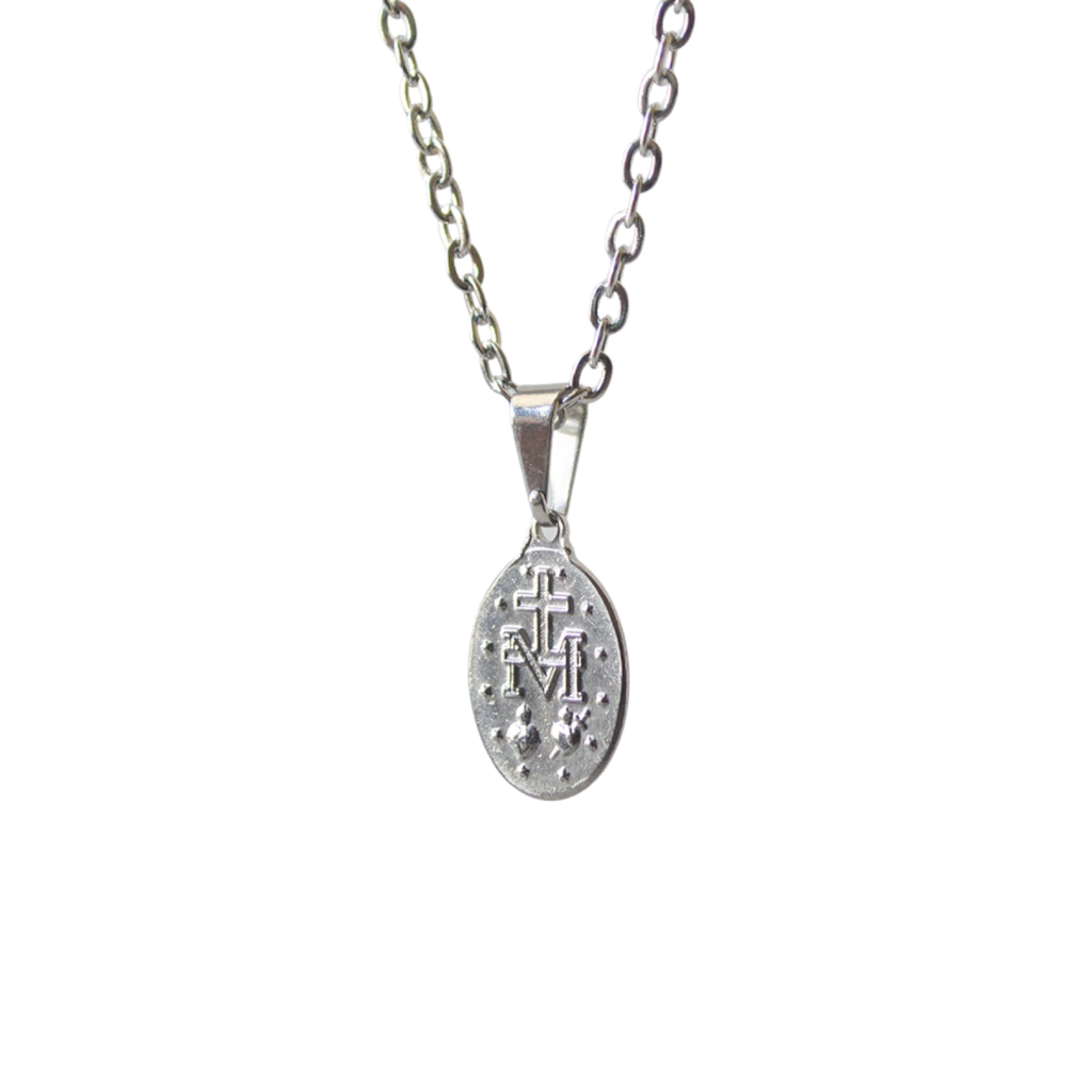 O colar com a Medalha Milagrosa em aço inox é uma peça cheia de beleza e significado. Tanto o colar quanto o pingente são feitos totalmente em aço inox, o que traz uma série de vantagens. Os acessórios em aço inox são conhecidos por sua durabilidade e resistência, além de possuírem características como não oxidação, não causar alergias, não enferrujar, não manchar e não escurecer. Com isso, você pode usar esse colar por um longo tempo, mantendo seu brilho e qualidade.