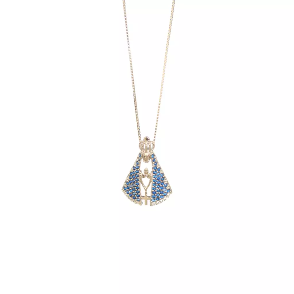 O Colar Nossa Senhora Aparecida é uma belíssima em prata 925. Possui a imagem de Nossa Senhora Aparecida com o manto cravado com zircônias azuis, deixando a peça mais delicada.