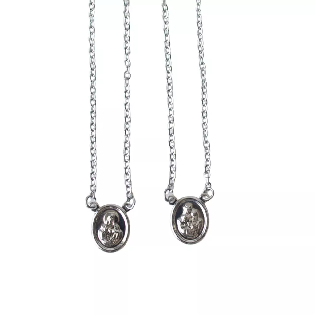 O escapulário em aço inox com as medalhas ovais de Nossa Senhora do Carmo e do Sagrado Coração de Jesus é um símbolo poderoso de fé e devoção que você pode carregar consigo todos os dias. Feito em aço inox de alta qualidade, esse escapulário combina resistência, durabilidade e delicadeza. Os acessórios em aço inox são conhecidos por sua durabilidade e resistência, além de possuírem características como não oxidação, não causar alergias, não enferrujar, não manchar e não escurecer. Com isso, você pode usar esse escapulário por um longo tempo, mantendo seu brilho e qualidade.