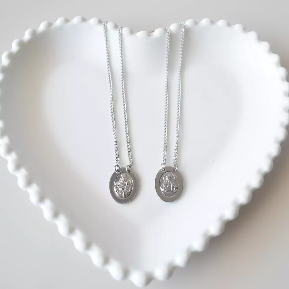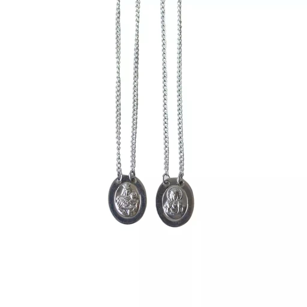 O escapulário em aço inox com as medalhas ovais de Nossa Senhora do Carmo e do Sagrado Coração de Jesus é um símbolo poderoso de fé e devoção que você pode carregar consigo todos os dias. Feito em aço inox de alta qualidade, esse escapulário combina resistência, durabilidade e delicadeza. Os acessórios em aço inox são conhecidos por sua durabilidade e resistência, além de possuírem características como não oxidação, não causar alergias, não enferrujar, não manchar e não escurecer. Com isso, você pode usar esse escapulário por um longo tempo, mantendo seu brilho e qualidade.