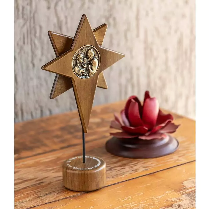 Deixe o verdadeiro sentido do Natal iluminar cada canto da sua casa com a Estrela de Belém Natal Sagrada Família. Esta peça extraordinária combina a beleza rústica da madeira com a serenidade da Sagrada Família, criando uma representação elegante e significativa do presépio e do nascimento de Jesus.
