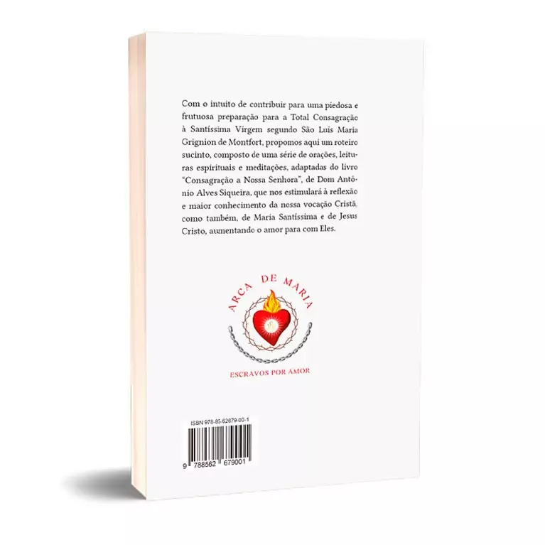 O livro "Exercícios Espirituais para a consagração" é um pequeno roteiro que a Fraternidade Arca de Maria oferece àqueles que desejam fazer a sua Total Consagração à Santíssima Virgem. Nele, você encontrará meditações e orações para cada dia do mês de preparação, sendo um complemento ao Tratado da Verdadeira Devoção.
