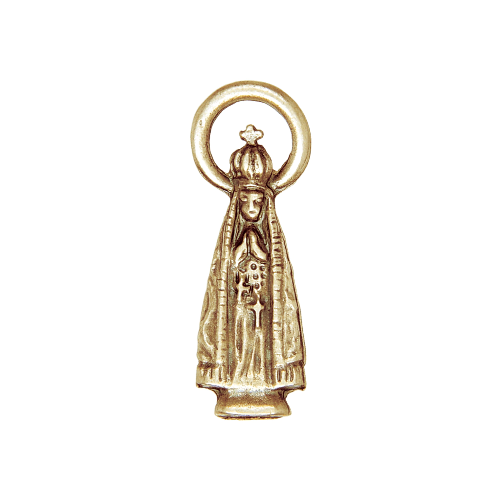 Miniatura de Nossa Senhora Aparecida em metal com acabamento ouro velho.