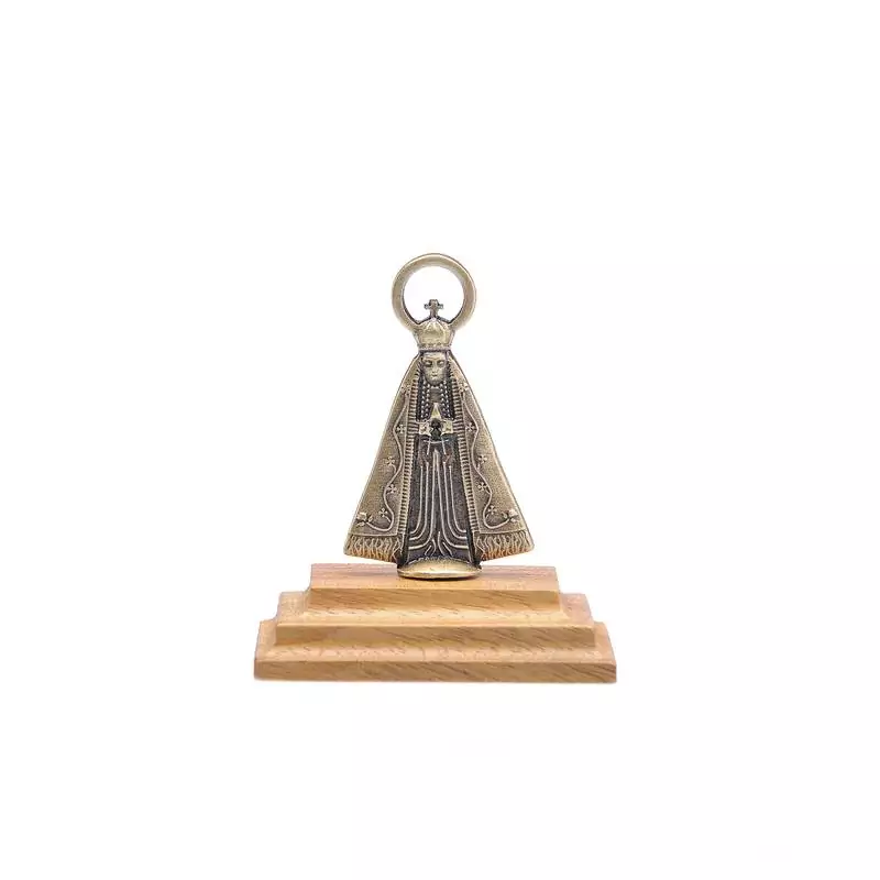 Nossa Senhora Aparecida no pedestal é confeccionado com base em madeira e metal com acabamento ouro velho. Com material de qualidade, o pedestal de Nossa Senhora Aparecida é uma forma perfeita de decorar uma mesa, oratório ou local de trabalho. Também é uma excelente opção para presentear com devoção e fé.