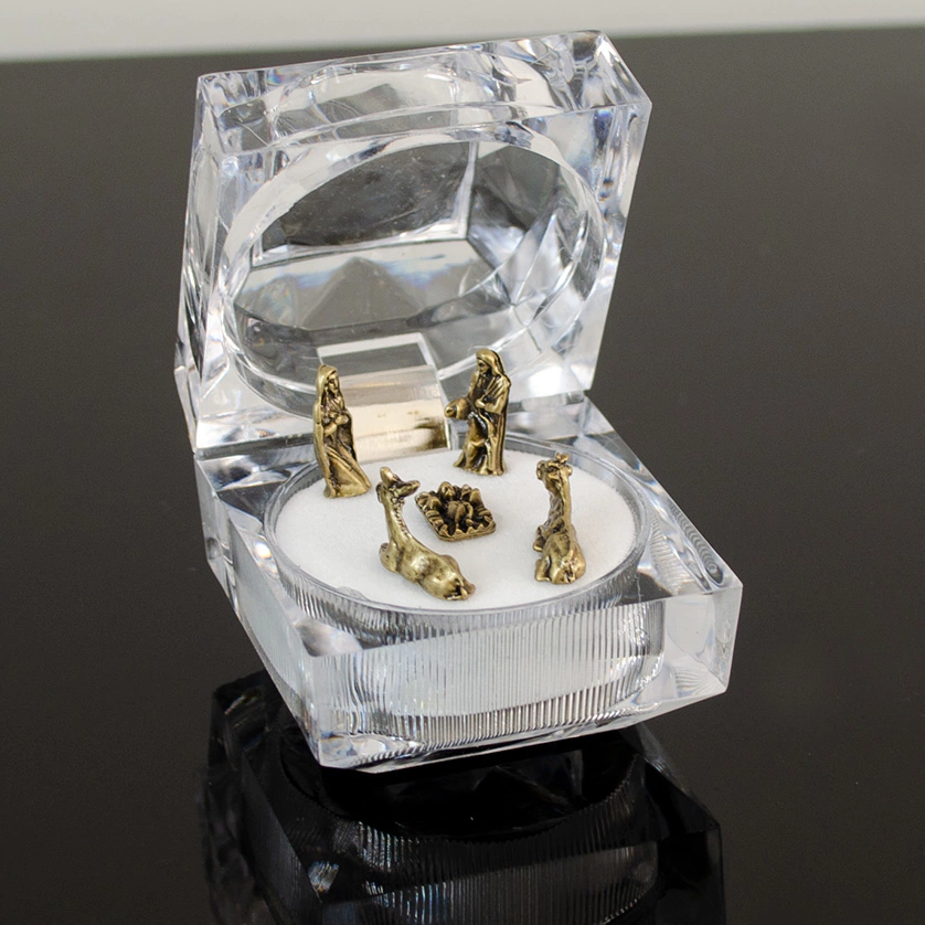 O presépio mini acrílico é confeccionado em acrílico em formato de caixinha e possui as imagens em metal com acabamento ouro velho. É a lembrança de amor e fé perfeita para presentear com significado neste natal.