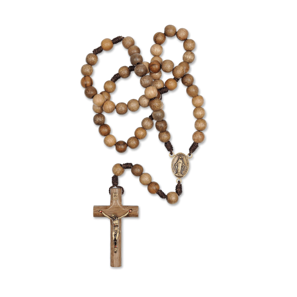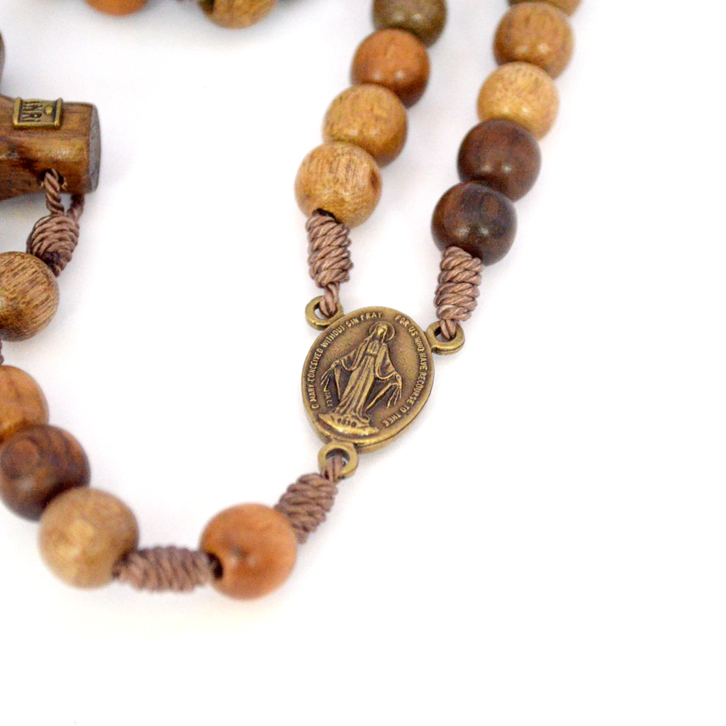O Terço Chagas de Cristo em madeira imbuia possui contas de 10mm. O crucifixo possui o detalhe das chagas de Nosso Senhor Jesus Cristo. Os metais possuem acabamento em ouro velho. O entremeio do terço possui a medalha milagrosa de Nossa Senhora das Graças.